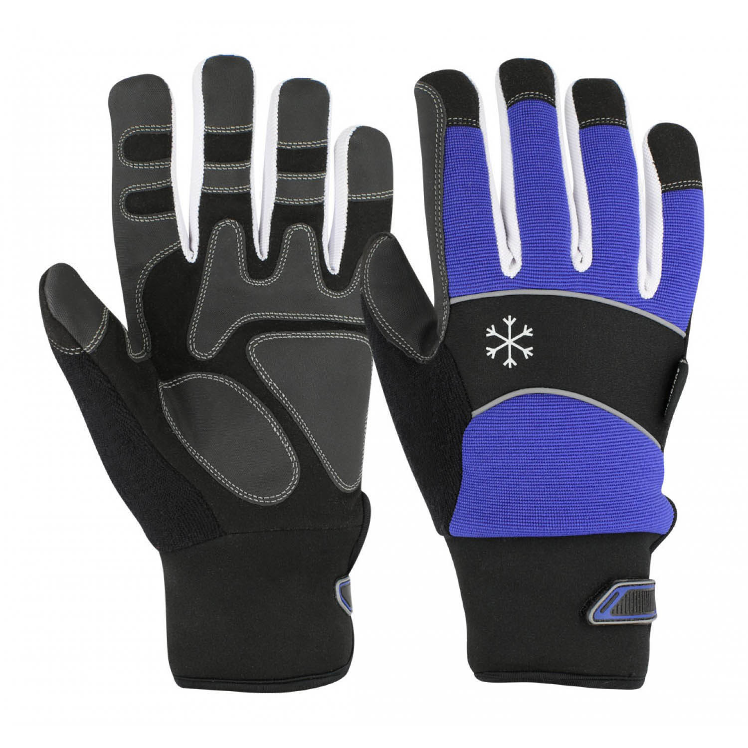 The gloves feature a M/O synthetic leather front with extra PVC grip palm for enhanced durability and control. The back is constructed from four-way fabric with foam and Playboy lamination, with towel fabric and foam lamination on the thumb for added comfort. The inside includes micro fleece with Thinsulateâ„¢ (40g) for lightweight warmth, finished with a neoprene cuff and knuckle, TPR strap with Velcro closure, reflector detailing, and Lycra binding for a secure fit.
